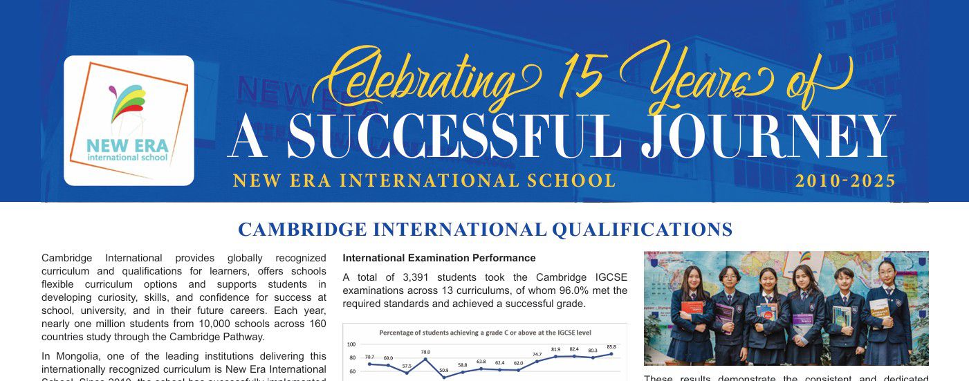 Өнгөрсөн 15 жилийн хугацаанд бид хамтдаа олон сорилт, шинэ эхлэл, тасралтгүй өсөлт, амжилтын арвин түүхийг бүтээж ирлээ. Энэ бүхэн нь бидний үе үеийн удирдлага, эрдэмтэн багш, ажилтан, төгсөгчид, сурагч, эцэг эх, асран хамгаалагч, харгалзан дэмжигчид, хамт олон, хамтрагч байгууллагууд болон хувь хүмүүсийн итгэл, сэтгэл, хичээл зүтгэлийн үр дүн юм.